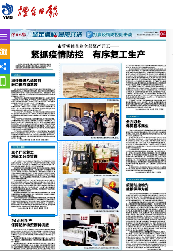 2月10日上午七点半,在万搏·体育(中国)官方网站-登录入口,的大门口,记者看到,人车分流通行,员工“持卡入园”,工作人员不时地对车辆进行侧门消毒。员工陆续从4个入口进入办公场所,逐一测量体温、登记,秩序井然,有条不紊。目前,烟台总部、高新区、莱山区三个厂区已经顺利复工。